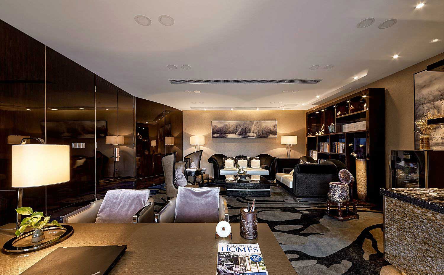 最后,在燈光的設計方面,設計師采用了柔和的燈光效果,使得整條走廊顯得更加溫馨舒適且富有層次感。同時,一些燈具還運用了傳統(tǒng)的琉璃材質,增添了一份華貴和奢華的氣息 綜上所述,新中式風格的高端商務會所走廊設計通過運用傳統(tǒng)的中國元素如獅像雕塑、大理石地板和中國紅等來打造出一個具有濃郁中國文化特色的場所。